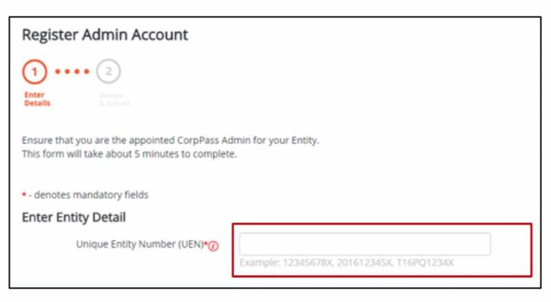 To register a CorpPass Admin account (The Registered Officer is the CorpPass Admin)