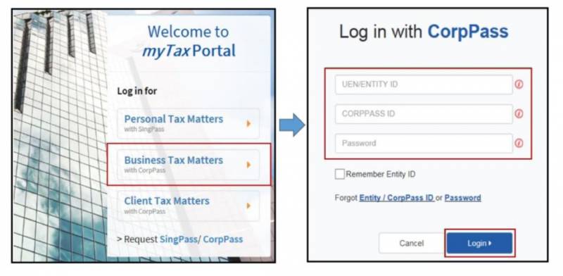 Log in to myTax Portal at mytax.iras.gov.sg with your CorpPass account to e-File Form C-S/ C for your company.