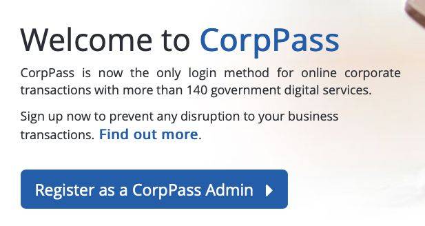 Visit www.corppass.gov.sg and click Register as a CorpPass Admin.