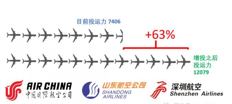 国航深航山航运力增投后,国航系从新加坡出港的航班将由每周35个增长到每周52个,可用座位数由每周7406个增长到每周12079个,运力增加63%。