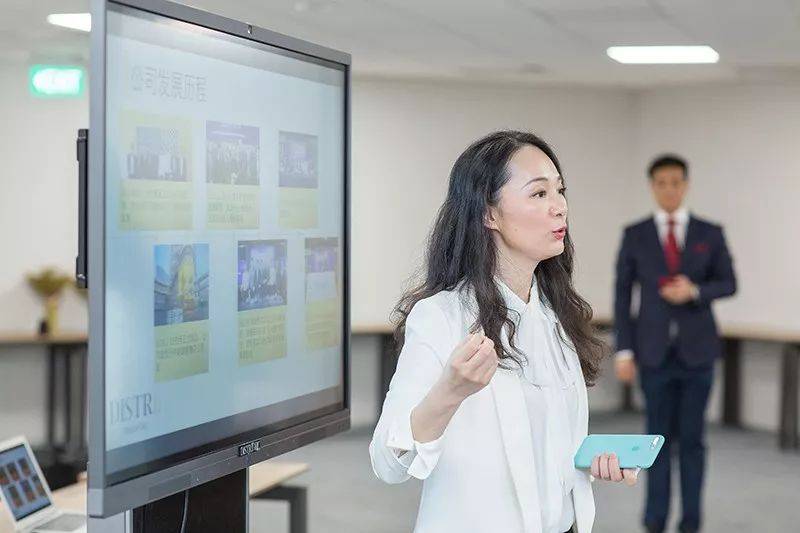 Distrii办伴联合创始人兼海外子公司CEO胡燕女士热情接待了这些重磅级的嘉宾,活动开始后,首先由锺曼英公参致辞,随后Distrii办伴胡燕向来宾们详细介绍了办伴新加坡共和大厦办公空间运营情况及办伴新智慧办公理念。