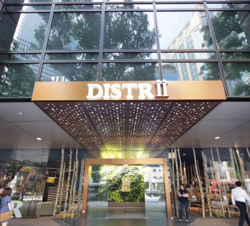 Distrii办伴新加坡共和大厦办公空间是新加坡城市地标、全城最高建筑,空间占据了大厦1-7层,总面积62,000平方英尺,空间可容纳超过900人,是目前当地最大的智慧办公空间。