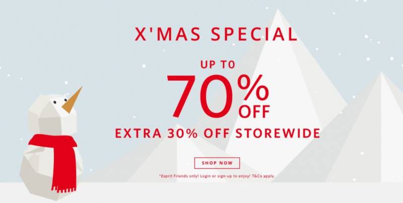 4.Esprit圣诞季大促销,低至3折,全场还有额外7折哦!