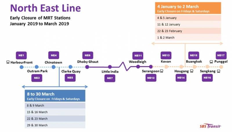 东北线部分地铁站将在明年1月至3月的特定星期五和星期六缩短运行时间,以争取更多施工时间。