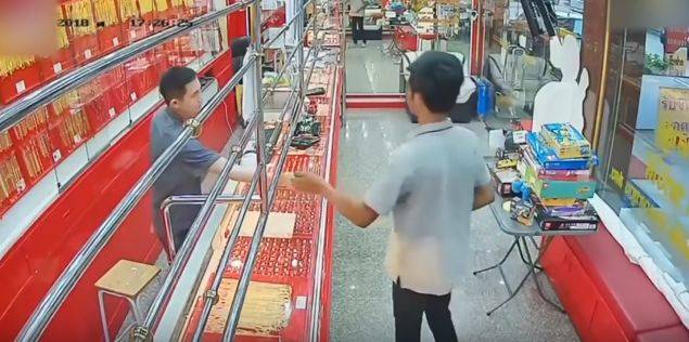 这一事件是在上周六(12月15日)发生在蔡厝港62街大牌624号油池广场购物中心(Yew Tee Square shopping centre)一家名叫Gold Scale Jewels的珠宝店里。