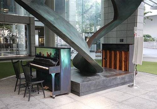 为什么市区重建局大楼底层会出现钢琴?原来这是“Play It Forward Singapore”组织发起的钢琴活动,让公众能随性坐下弹奏。