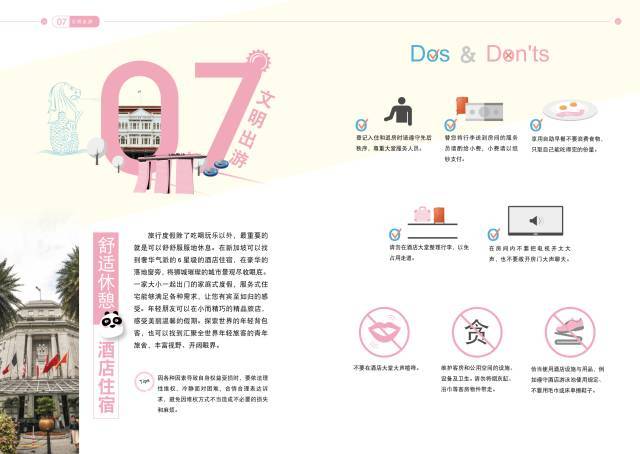 整个手册包含10个章节从基本的新加坡介绍,入境须知到新加坡出游的各个方面,可谓十分全面。不管你是在新加坡生活的小伙伴遇到国内朋友咨询新加坡旅游的事儿,还是国内小伙伴要来新加坡游玩,这本手册你一定要收藏!