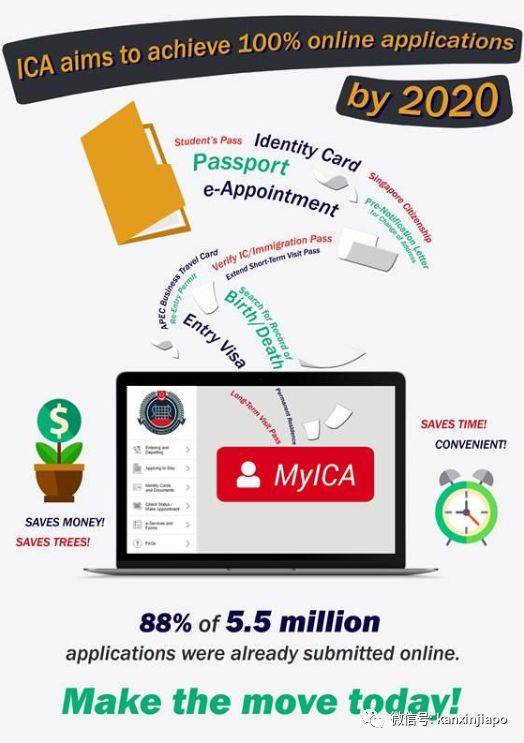 今天(12月20日),新加坡移民与关卡局宣布,其电子服务平台MyICA的服务项目从之前的8项增加至15项,并将在2020年之前,全面停止纸张申请表格的使用。