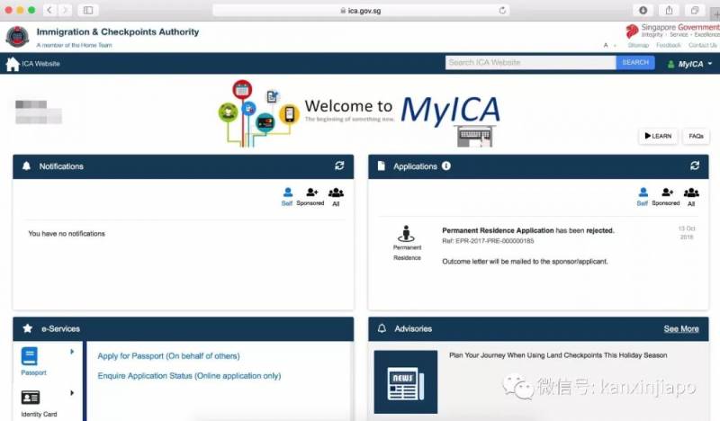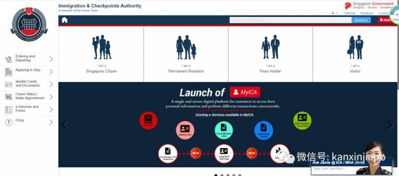 广告新增了以下几个项目:申请再度入境准证、学生准证、永久居民证以及新加坡公民权、检查移民通行证的有效性和身份证、婚前长期探访证评估、预约ICA。