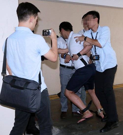 岂料被告距离珠宝店10米外时,又发现媒体踪影,拒绝继续前行,过程中不断挣扎,使劲扭曲身体,不让媒体拍照。