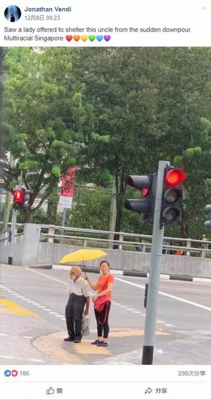 在本月的8日,一名Facebook的用户在一场能让没伞的人感受到透心凉的大雨天,发了篇令坡岛人民暖心的图片及内容。