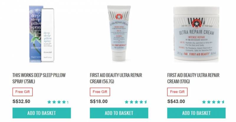 此页面内包含Jurlique、Christophe Robin等网红产品