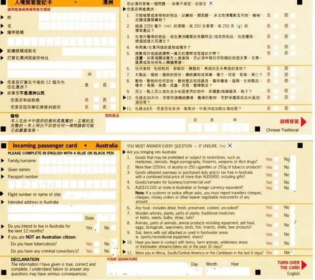 和入境新加坡一样,入境澳洲也要填写入境卡,这张卡有个部分要注意,就是入境物品申报。