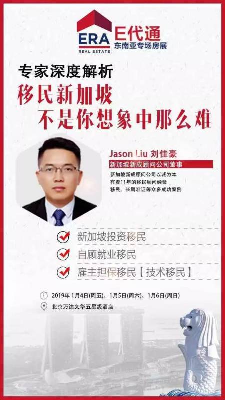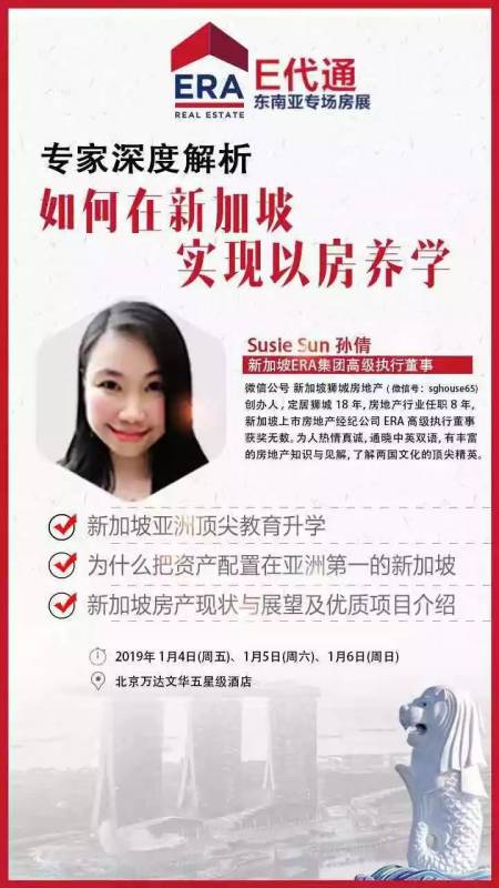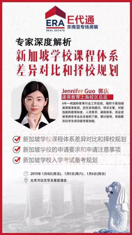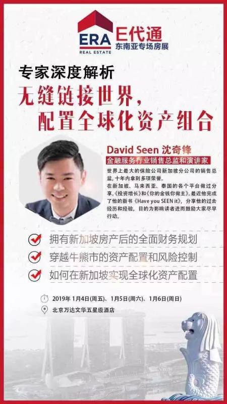 广告新加坡ERA集团这次的e代通新加坡东南亚房产专场北京站,派出了最优秀的华文精英团队来让北京或其他地区的投资者对新加坡,东南亚其他国家的整体现状及房产有更深入的了解,通过与专家的交流,提供适合的资产配置,房产、金融、留学及移民咨询方案!