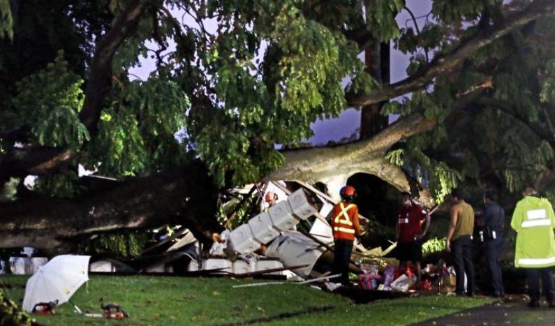 新加坡的树木长得都是枝繁叶茂的,如果没有做到及时的处理,很有可能导致树木在风很大情况下发生倾倒事件!