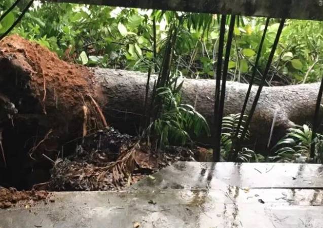 三巴旺公园昨天傍晚5时30分共有两棵树被连根拔起,它们分别为俗称“喇叭花树”(Trumpet Tree)的风铃木,以及几内亚格木(Ordeal Tree)。
