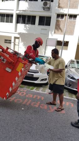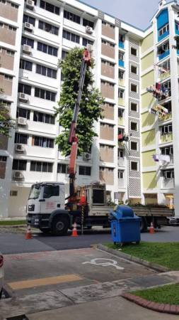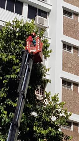 在接获通报后,市镇会的园艺师Chew先生就立刻通知吊车公司,自己也在数分钟内赶往现场。吊车公司的员工当场后立刻开始“救援行动”。