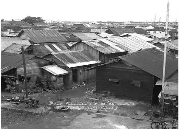 上世纪五六十年代的甘榜河水山(“甘榜”是马来语,村庄之意)是一处贫民窟,都是木板和锌板混搭而成的简易住房,主要居民是华人。