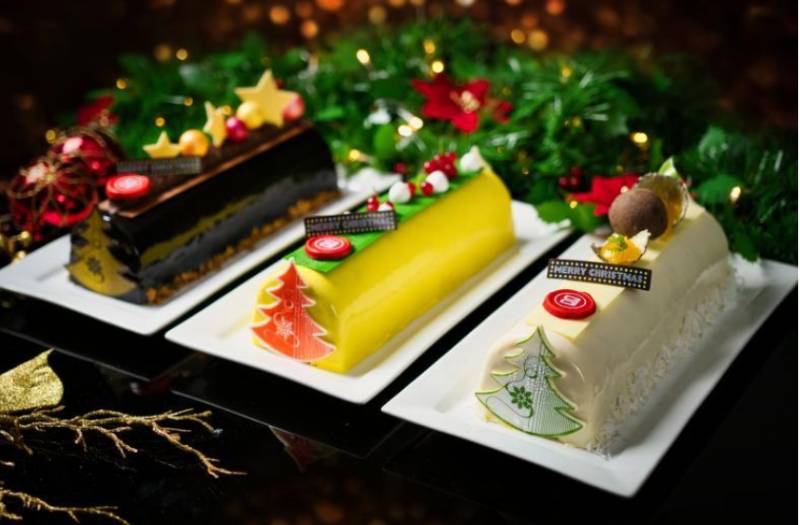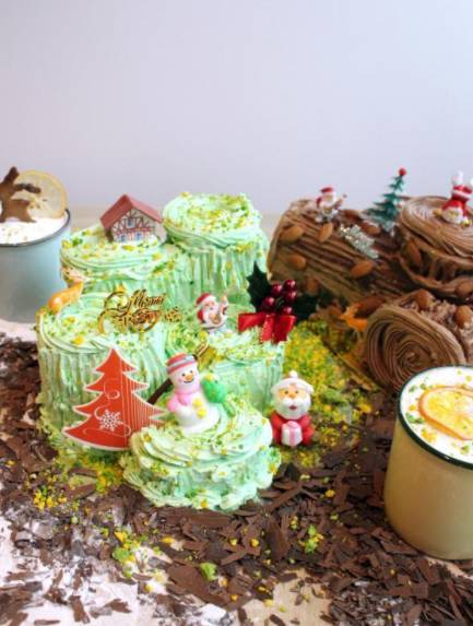 推出白巧克力班兰红豆树桐蛋糕(Ivory Valrhona Yule Log with Pandan Roulade)。