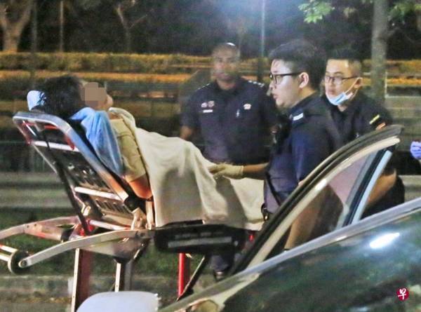 广告新加坡记者接到消息赶到时,一名男子已躺在担架上,由救护人员抬上车,他一脸痛苦。