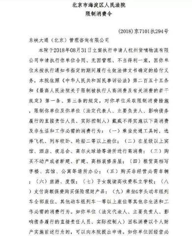 该公司和戴威本人不得坐飞机、火车软卧等,不能在星级宾馆等场合消费,不能买房买车旅游等。