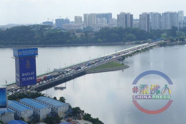 本报于星期六上午观察柔佛长提,发现往返马新两地的车流量都很多,其中新加坡往新山方向最为堵塞。
