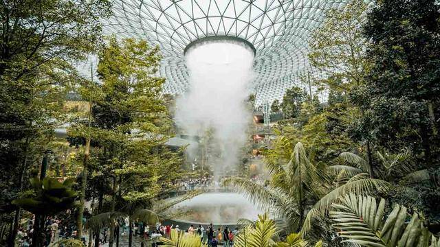 星耀樟宜占地13.57万平方米,其中零售面积为5.36万平方米,造价高达17亿新加坡元,拥有世界最高(40米)的室内瀑布“雨漩涡”(Rain Vortex),更有不少园林景色。