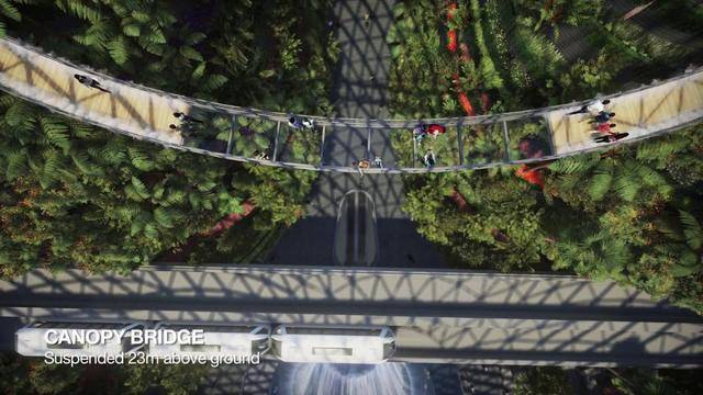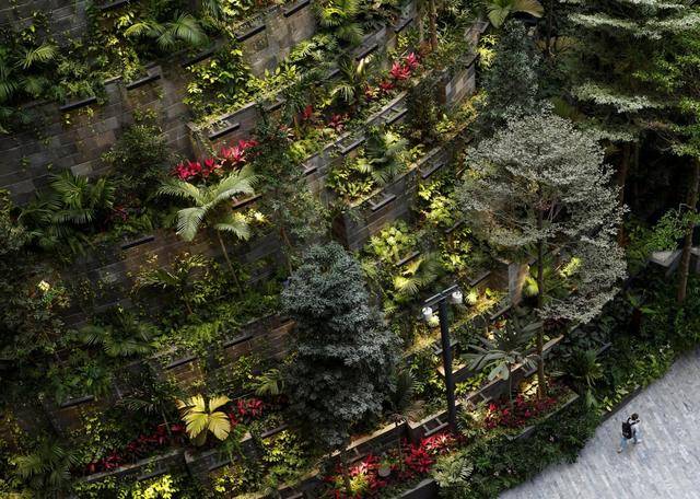 而围绕着雨漩涡的是高达四层楼的室内花园“森林谷”(Forest Valley),其绿化面积约为2.2 万平方米,将成为新加坡规模最大、种类最多的室内植物天堂之一!