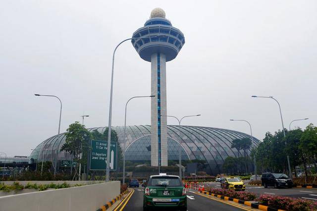 从路上可以看到樟宜机场的控制塔和星耀樟宜商场。