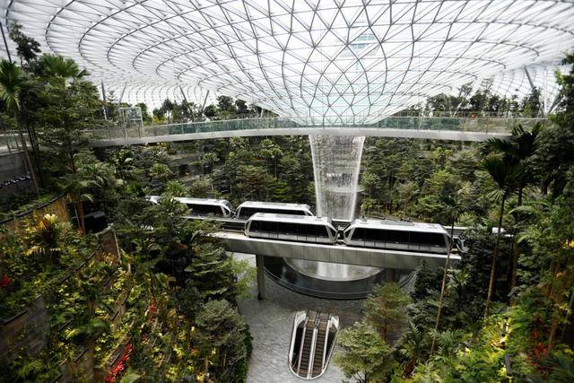 旅客前往星耀樟宜时,可以欣赏沿途美景。