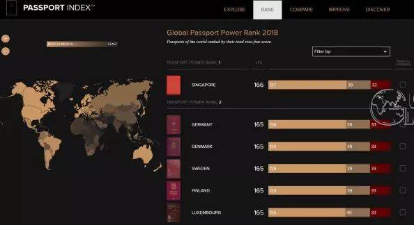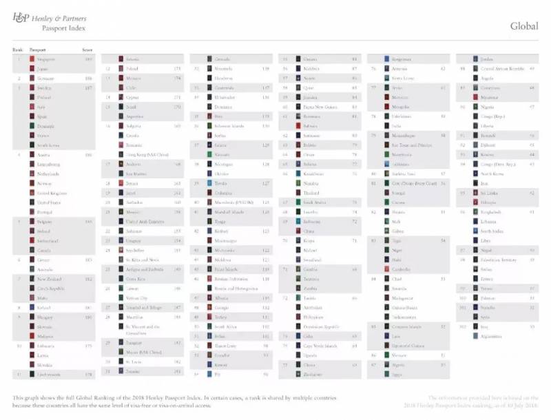 根据最新发布的护照指数榜单显示,新加坡以189个免签国登顶,荣获2018年护照含金量全球第一。