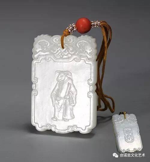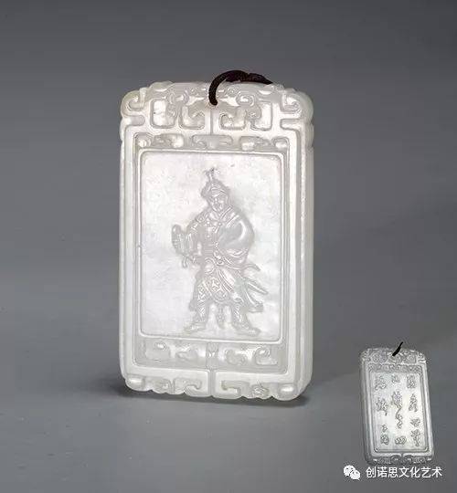 白玉材质,玉质细腻晶莹,温润如荔枝,整体作长方牌形,顶部带有打孔,双面工浅浮雕纹饰雕琢,一面十二生肖守护神羊神为主体纹饰,人物造型飘逸,造型精致典雅、美观大方,雕琢细腻、布局和谐,为难得的收藏?戴精品。