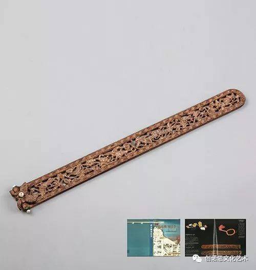 清宫廷向来对沉香器物喜好,故清宫造办处曾为皇家制作沉香扁方,此扁方整体以镂空雕工艺雕云鹤纹,边上一圈回纹,一头有一只蝴蝶并镶珍珠。此物制作工艺考究为一件上乘收藏佳器。