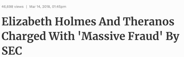 结果在获得第一轮融资600万美元后,发现做不出来,但她没有就此停止,而是和团队做了一个“造假”版本,一台笨重的测血机器,而当所取的血太少时,根本不够检测血液,于是,她把所取得的血兑上生理盐水,变成稀释的“血水”。后来600万用完,项目毫无进展。