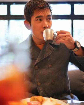 黄俊雄星期日上午上载吃早餐的帅气照片,祝贺自己生日快乐。