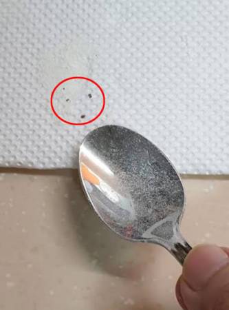 洪女士在奶粉中发现深褐色颗粒。 (受访者提供)