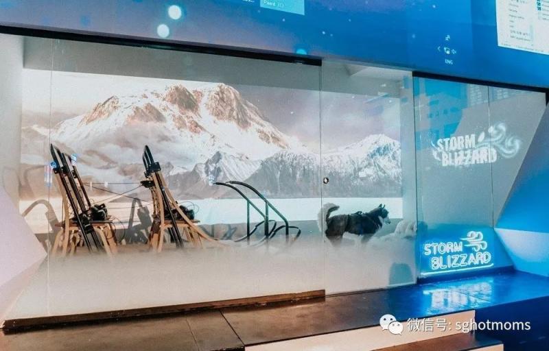 步入封闭的Storm Blizzard区域,体验低温和强风,VR骑行带您穿过雪橇滑雪道穿越雪山地形。对于四季如夏的新加坡而言,真的很有对比性。