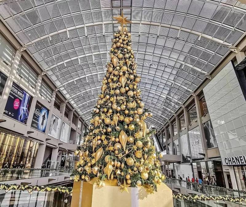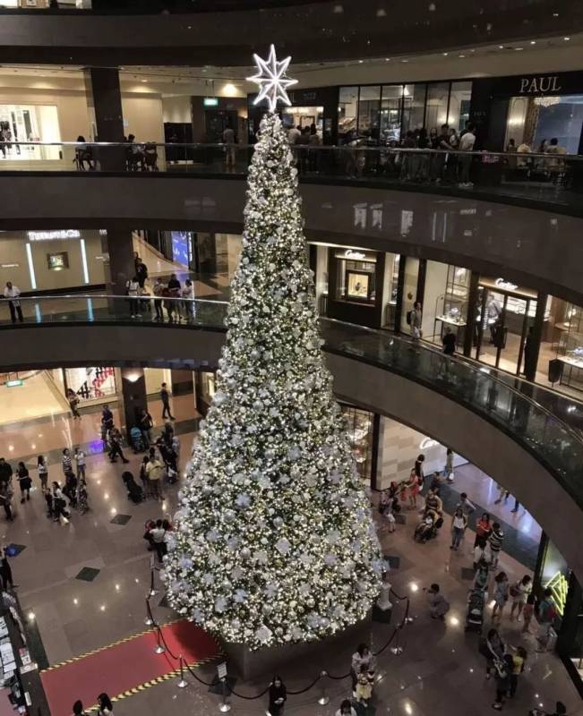 白色的灯光给金碧辉煌的商场增添几分浪漫