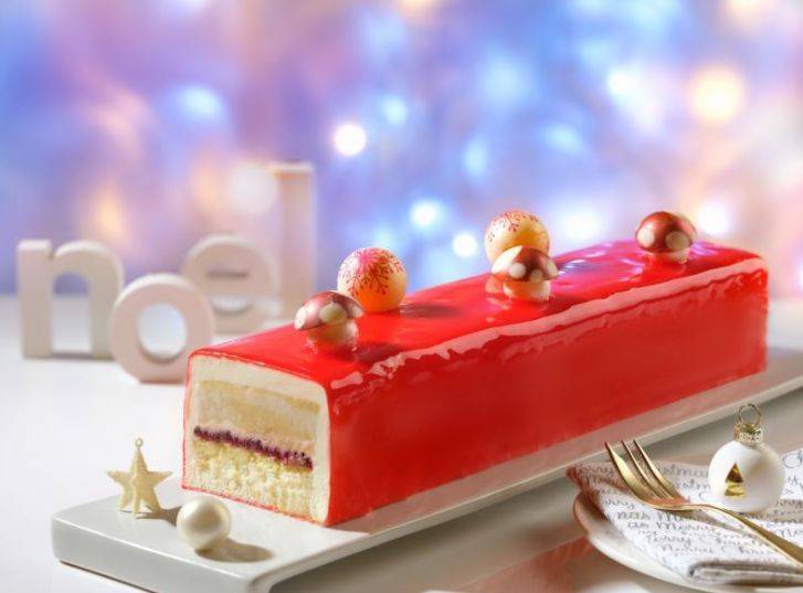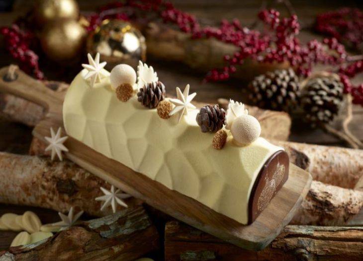 推出白巧克力班兰红豆树桐蛋糕(Ivory Valrhona Yule Log with Pandan Roulade)。