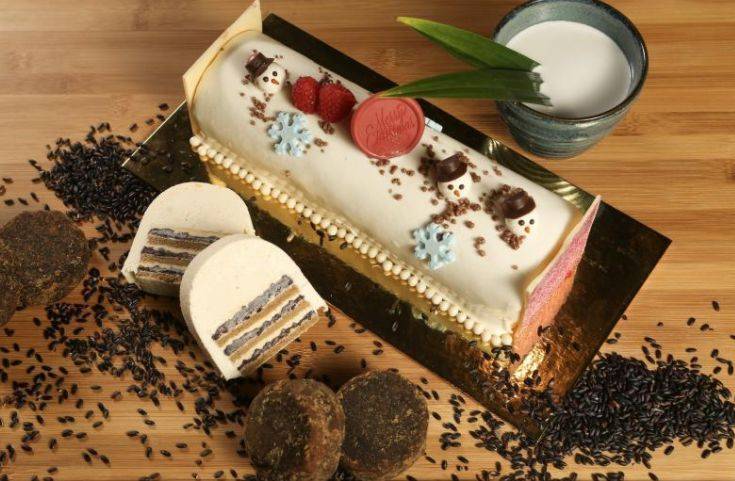 黑糯米粥(Bubur Pulut Hitam)是暖心的热甜品首选,这款树桐蛋糕口味跟乌节咖啡座强打新加坡美食风味自助餐的主题切合,从其自助餐的甜品之一黑糯米粥寻获灵感,将之转化为佳节的树桐蛋糕。
