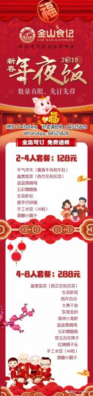 如果你对金山食记的年夜饭套餐期望值up up up,现在,年夜大餐已经开始接受预定,全新加坡限量100套,错过了就没有了哦!