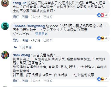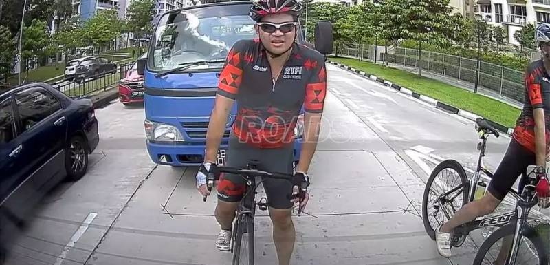 根据新加坡公路交通法令,在双车道或以上的马路,脚踏车可以与车辆并行。但是,脚踏车必须以不阻挡机动车行进为原则靠左行驶,视频中的脚踏车显然违反了这个规定。