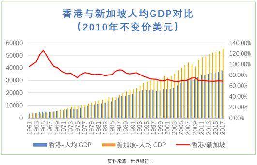 说起新加坡,李光耀先生就是绕不过去的关键人物。至今,多数人还认为是李光耀选择的正确道路,才造就了新加坡今日的辉煌。一个例证是根据世界银行的数据,以2010年不变美元价衡量,香港和新加坡(这里将二者做比较,仅因为二者都是特殊的“城邦经济体”,请区分一为中国的特别行政区,一为主权国家)在1961年的人均GDP几近相同,那时,香港人均GDP为3380.63美元,新加坡为3544.81美元,前者是后者的95.36%,甚至在1965年间香港还一度以较大优势领先新加坡。可现如今,香港2017年人均GDP为37927.13美元,仅是新加坡55235.51美元的68.66%。香港在落后,悲催的是落后的差距还在逐步拉大。