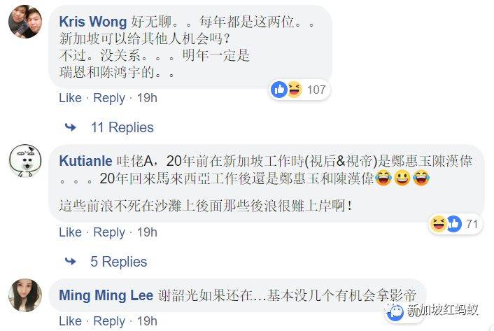 马来西亚各大报章也纷纷报道了《红星大奖》奖项。毕竟许多马来西亚人也和新加坡人一样,从小看本地华语电视剧长大,更何况今年的最佳男演员陈汉玮也是来自马来西亚。无独有偶,马来西亚网民的留言也与新加坡网民的十分类似。