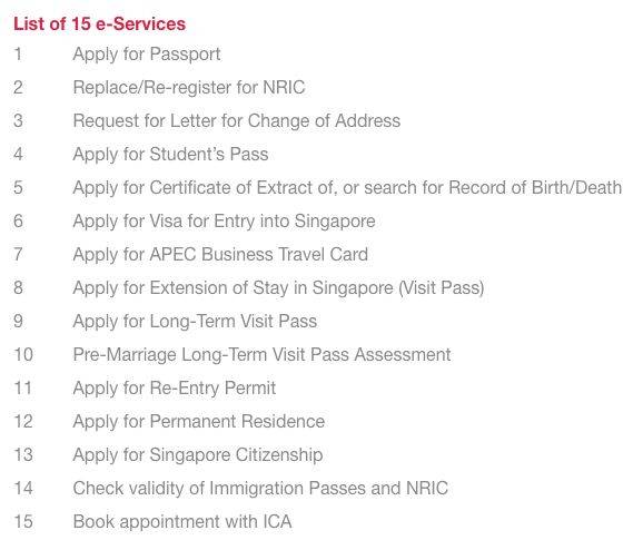 其余少数仍无法透过网上办理的手续一般使用量非常小,或是因申请者须要亲临总部进行面谈,这包括放弃公民权以及证明自己在新加坡出生等。