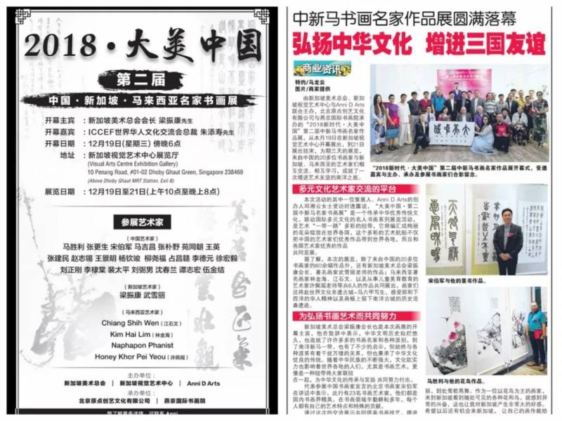 由新加坡美术总会、新加坡视觉艺术中心与Anni D Arts联合主办,北京原点创艺文化有限公司与燕京国际书画院承办的“2018新时代·大美中国”第二届中新马书画名家作品展,从本月19日在新加坡视觉艺术中心开幕展出,到21日展出结束,为期三天的展览,来自中国的20多位书画家与新加坡、马来西亚的艺术家们相互交流、相互学习,成就了一次增进艺术友谊的南洋之旅。