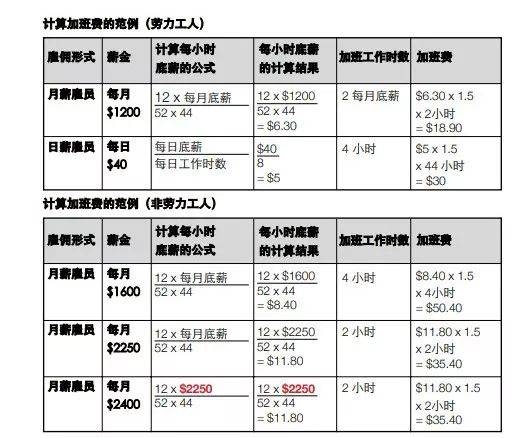 1.5 x 加班工作时数x (12 x 每月底薪) /