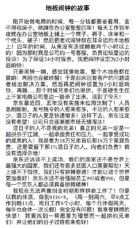 “以我的体质,做到8116+8,周一到周六,早8点工作到晚11点,周日工作8小时,每个月休假两天,完全没有问题!“