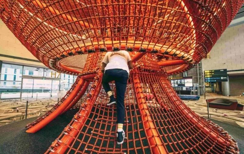 要知道,很多机场都有操场供孩子们娱乐,但没有一个是既适合儿童又适合成人。有兴趣的朋友可以去攀爬---这个兼具游乐场的艺术设施~