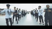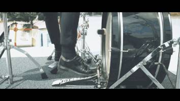 视频中,一个近景镜头:只见鼓棒在鼓手高举的右手上被轻巧而熟练的旋转着。小号声也随之响起...